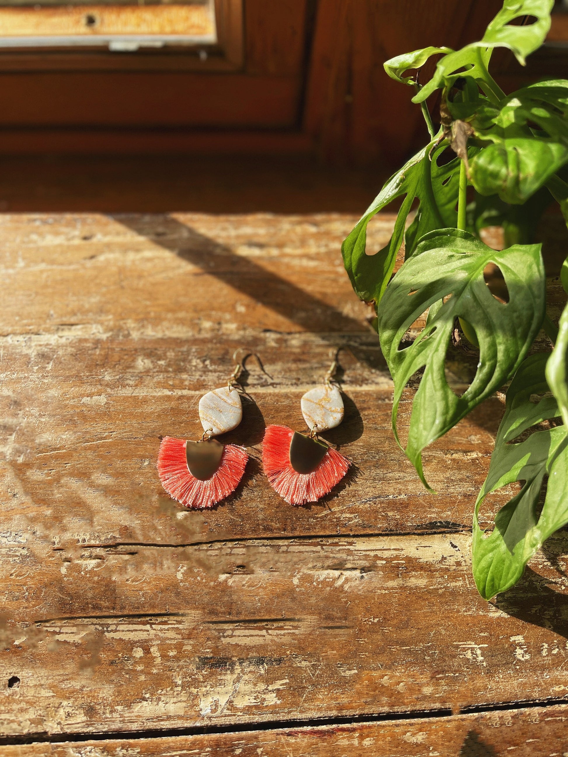 Handmade Clay Earrings, all are made to order and each set is unique and may not be exact to photo. Nickel Free earring backs, handmade from Polymer Clay, lightweight at .2 oz each. Customs are available upon request Made to order, light weight, silver.