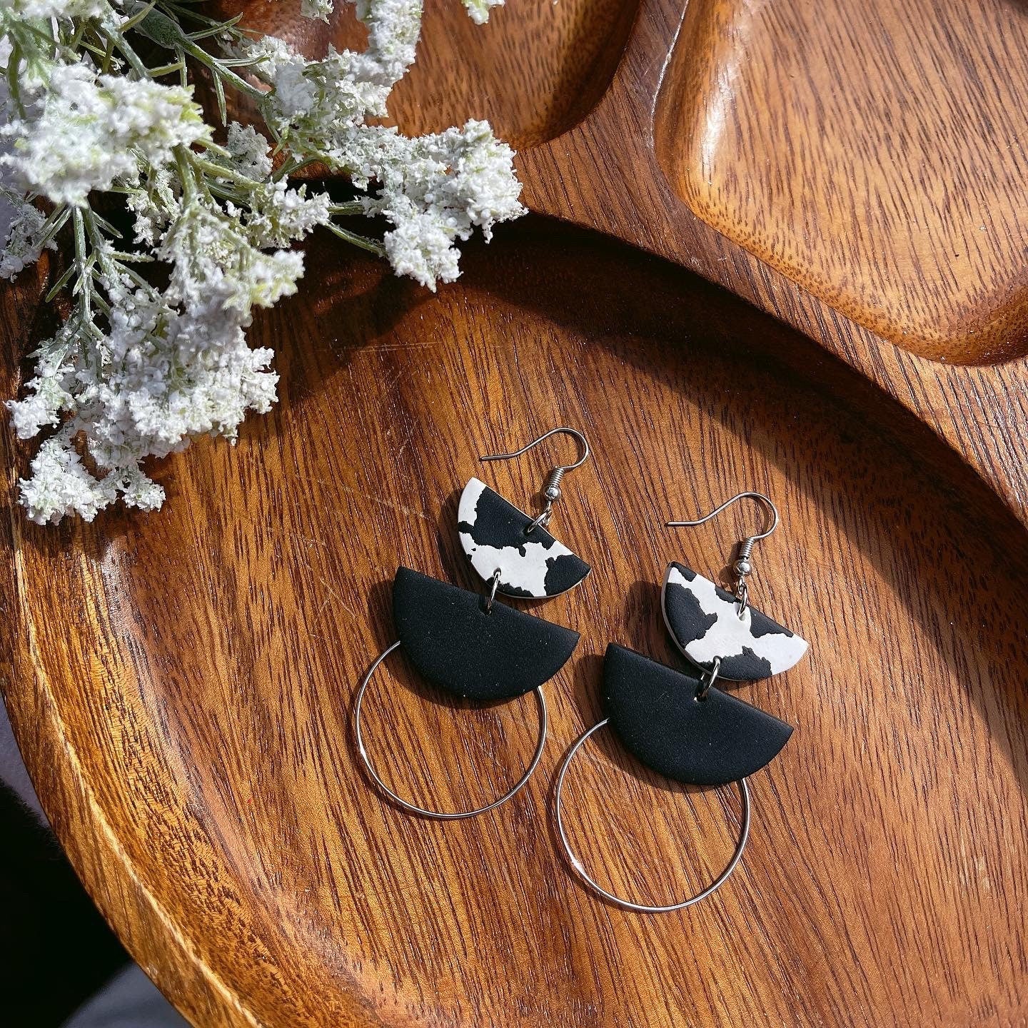 Handmade Clay Earrings, all are made to order and each set is unique and may not be exact to photo. Nickel Free earring backs, handmade from Polymer Clay, lightweight at .2 oz each. Customs are available upon request Brown Clay Cow earrings. Made to order, light weight, silver.