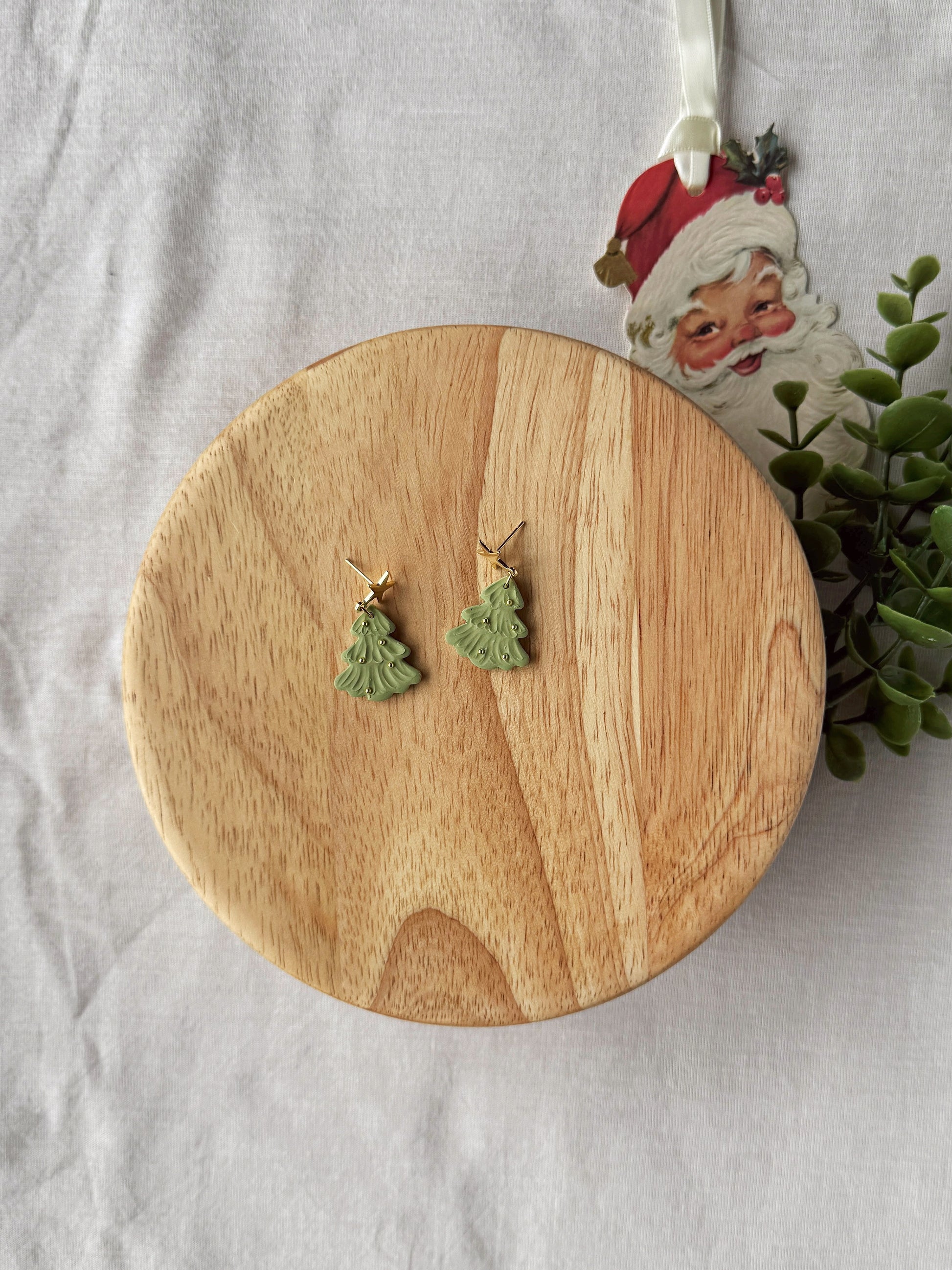 Green Sparkle Tree Clay Earrings